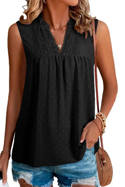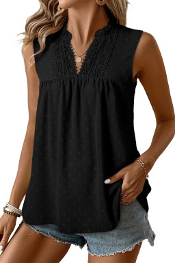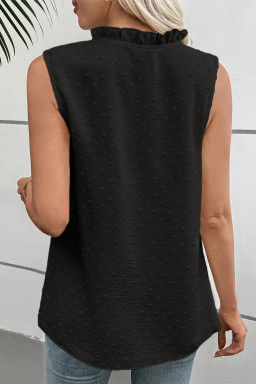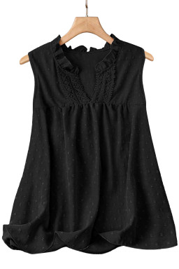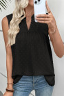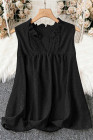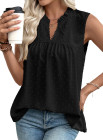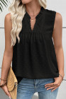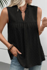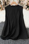 Black Linhara Plus Size Sleeveless Solid Color Notched Neck Casual Shirt For Summer