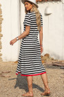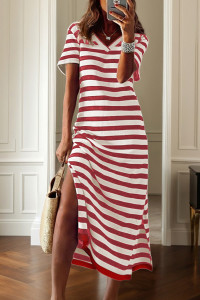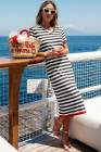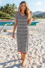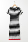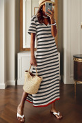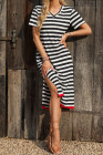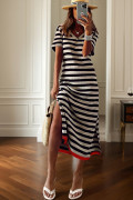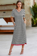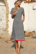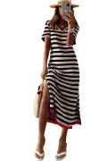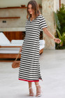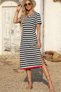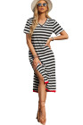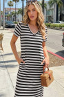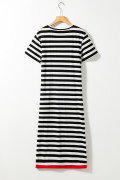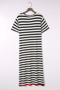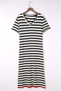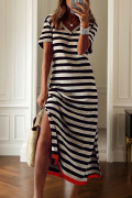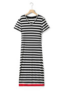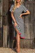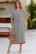 Black Stripe Olivia Mark Stripe Print V Neck Maxi Dress with Side Splits