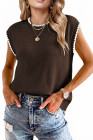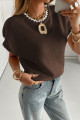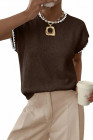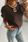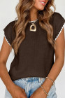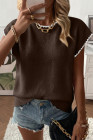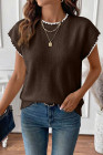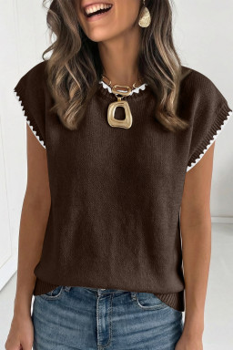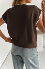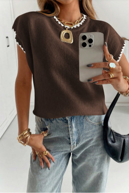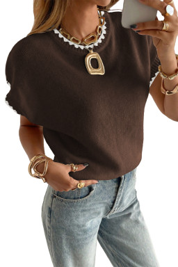 Chicory Coffee Contrast Scalloped Trim Round Neck Short Sleeve Sweater