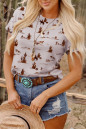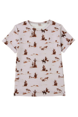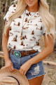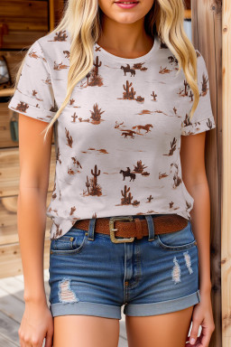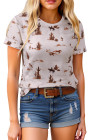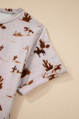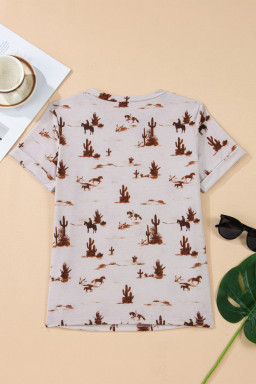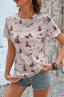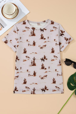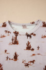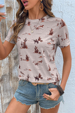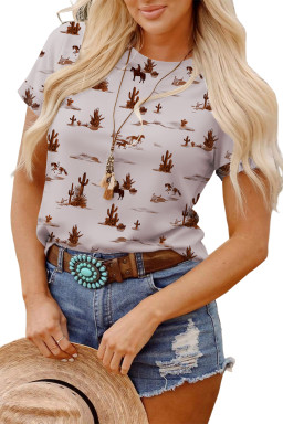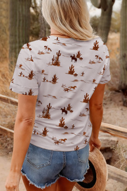 High-rise Western Cowboy Desert Print Casual Crew Neck T Shirt