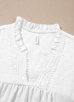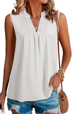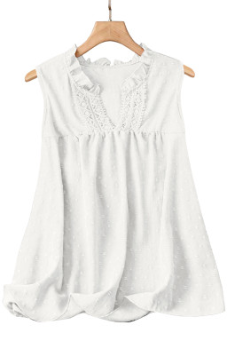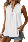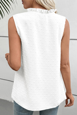 White Linhara Plus Size Sleeveless Solid Color Notched Neck Casual Shirt For Summer